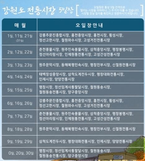 강원도 오일장 장날표