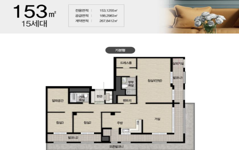 - 타입 : 44개 타입, 84m2 ~ 154m2